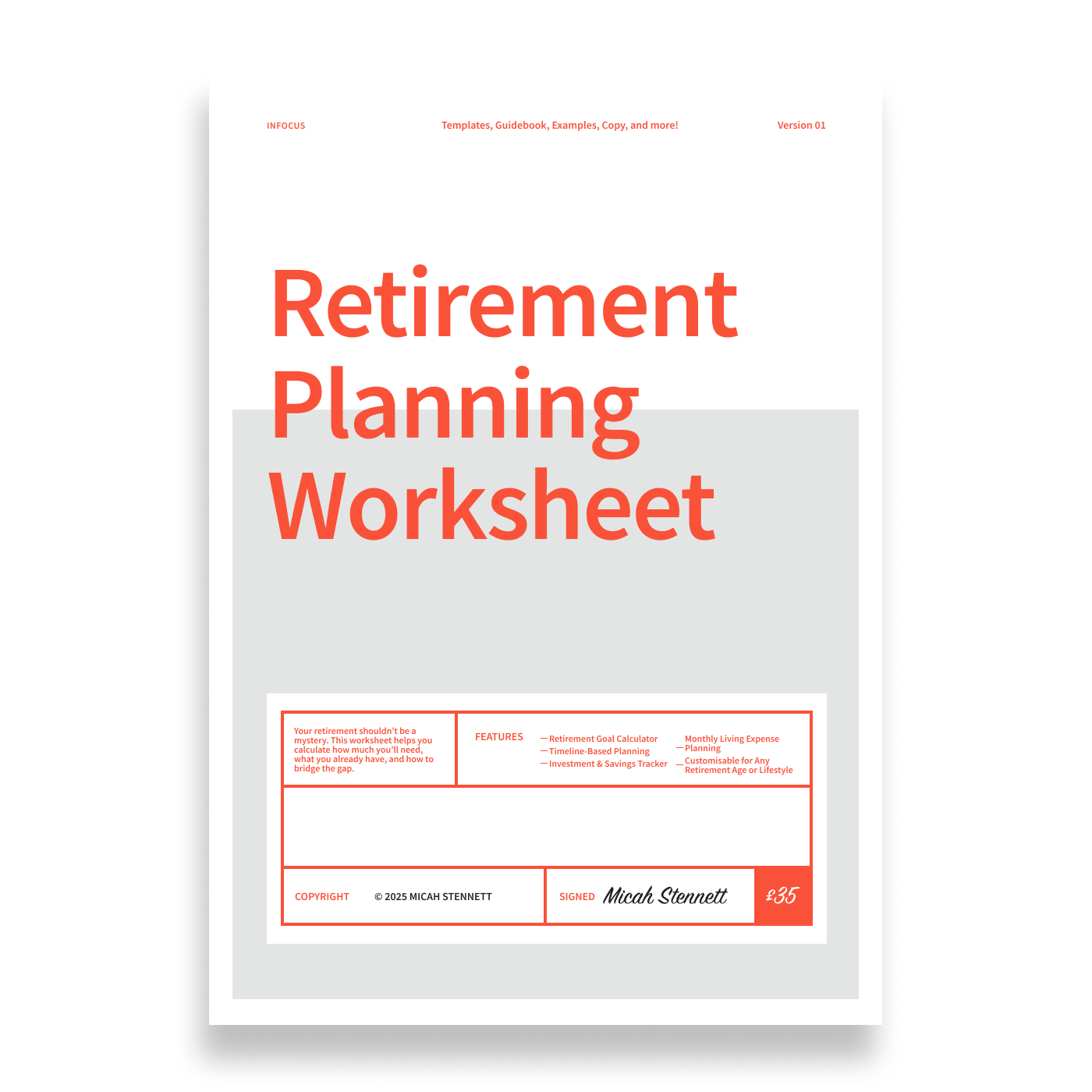 The InFocus Retirement Planning Worksheet gives you a clear path to financial freedom. With built-in calculators and planning tools, it helps you assess how much you’ll need to retire comfortably, whether you’re aiming for early retirement or a traditional timeline.