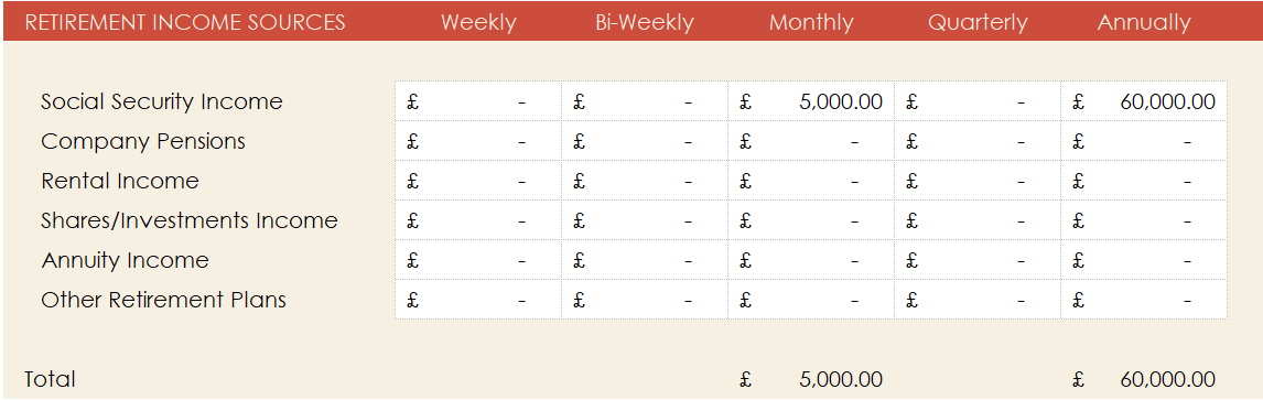 Clarity on the Big Picture: Easily estimate your total retirement requirement based on monthly needs and retirement duration.